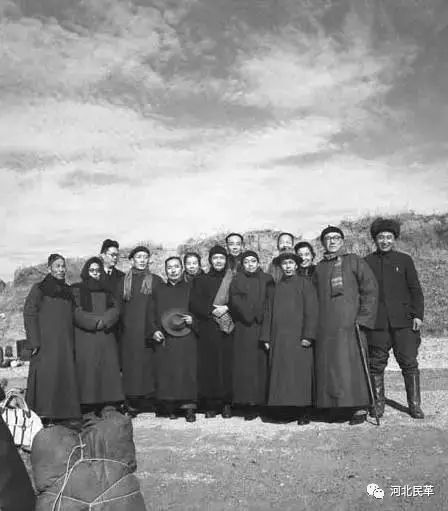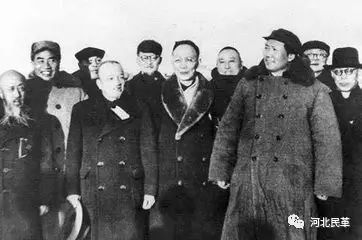 1949年3月25日,毛泽东主席等率中共中央机关和人民解放军总部进入北平。这是同前来迎接的民主党派负责人和其他民主人士在西苑机场合影。左起:沈钧儒、朱德、董必武、李济深、陈其瑗、郭沫若、黄炎培、毛泽东、林伯渠、马叙伦。