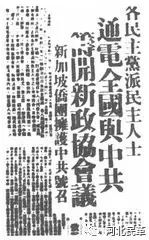 (五)各民主党派、各人民团体、各社会贤达迅速召开政治协商会议,讨论并实现召集人民代表大会,成立民主联合政府!