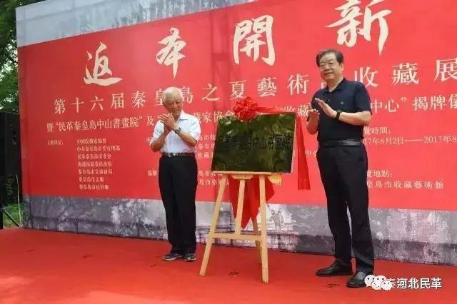 8月2日,民革秦皇岛中山书画院在秦皇岛市收藏艺术馆举行揭牌仪式。全国人大常委会原副委员长、民革中央原主席周铁农,河北省政协副主席、民革河北省委主委卢晓光为民革秦皇岛中山书画院揭牌。周铁农主席为书画院亲笔题字“中山书画院”。
