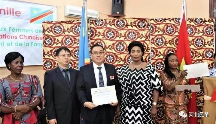 左三捧证书者为李凯,左四为刚果(金)妇女儿童部长珊达拉·萨福·罗布萨女士
