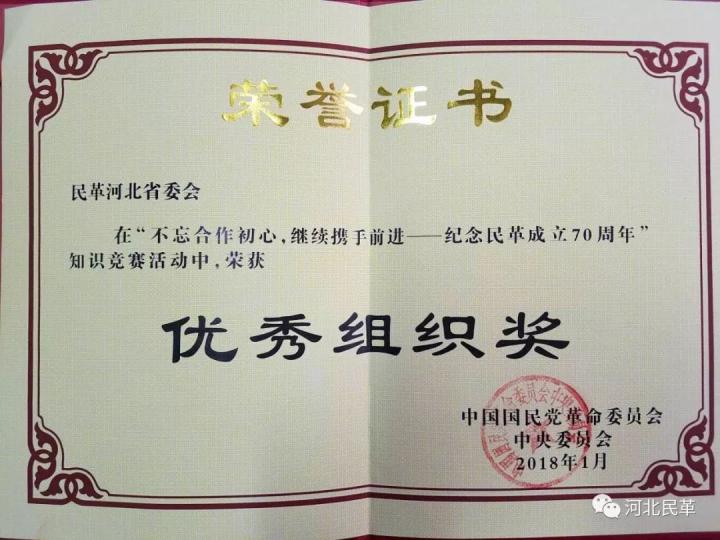 【纪念民革成立70周年知识竞赛】河北代表队荣获优秀组织奖