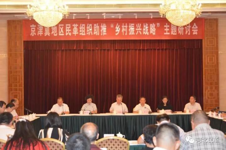齐成喜在致辞中说,近年来,天津围绕落实京津冀协同发展国家战略,以推进农业供给侧结构性改革为主线,大力推进三产融合发展,乡村建设进入快速发展时期。但是在“三农”工作中还存在一些现实问题。民革天津市委会组织民革党员中的专家学者积极调研、论证,同时与京、冀民革组织联系,开展联合调研,力争为京津冀的乡村振兴贡献力量。