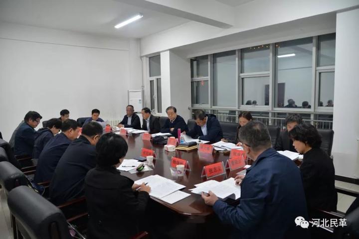 3月26日,民革河北省委会主委卢晓光主持召开民革河北省第十二届委员会第六次常委会议。会上,传达学习了习近平总书记重要讲话精神、全国两会精神和民革十三届六次中常会精神,讨论了民革河北省委会2019年重点工作,部署了全省民革党员企业家大调研工作。副主委沈瑾、范振增、梁立敏、张永强、李金善出席会议。