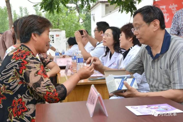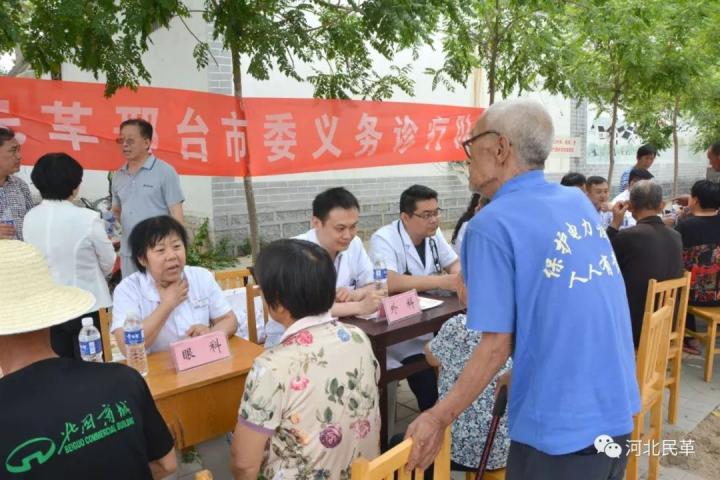 5月26日,民革邢台市委会主委杨瑞硕、副主委刘聚良、三支部主委段长军组织民革三支部为主的13名医疗专家到临城县西竖镇彭家泉村开展送医送药、免费义诊活动。