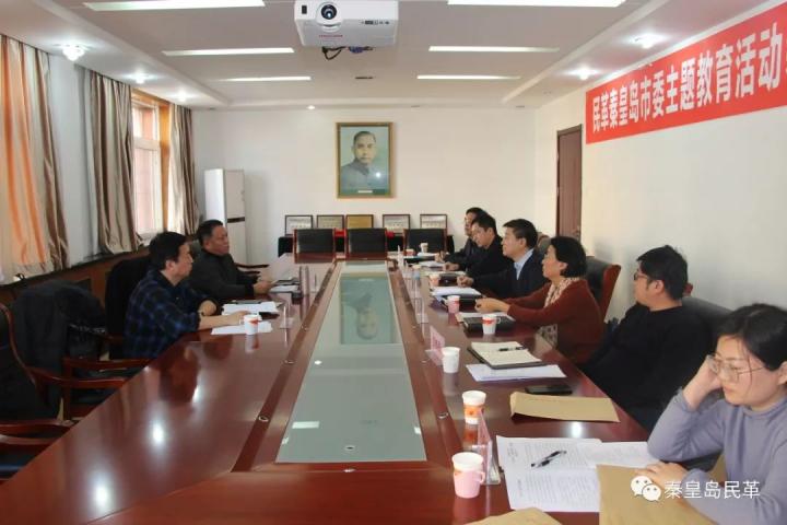 12月13日,民革秦皇岛市委会在机关会议室召开“不忘合作初心,继续携手前进”主题教育活动领导班子民主生活会。民革秦皇岛市委会主委岳会仁主持会议,民革秦皇岛市委会秘书长齐振荣,副主委牛志刚、贾旭涛、刘长春参加会议。中共秦皇岛市委统战部副调研员吴振进、党派科科长张啸虎应邀出席指导。