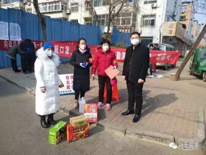 民革党员、冀红集团总裁纪红为北环路街道和社区干部捐赠口罩等防疫物资,让奔波在防疫战线上的基层同志们在更完备的物资保障中安全工作。