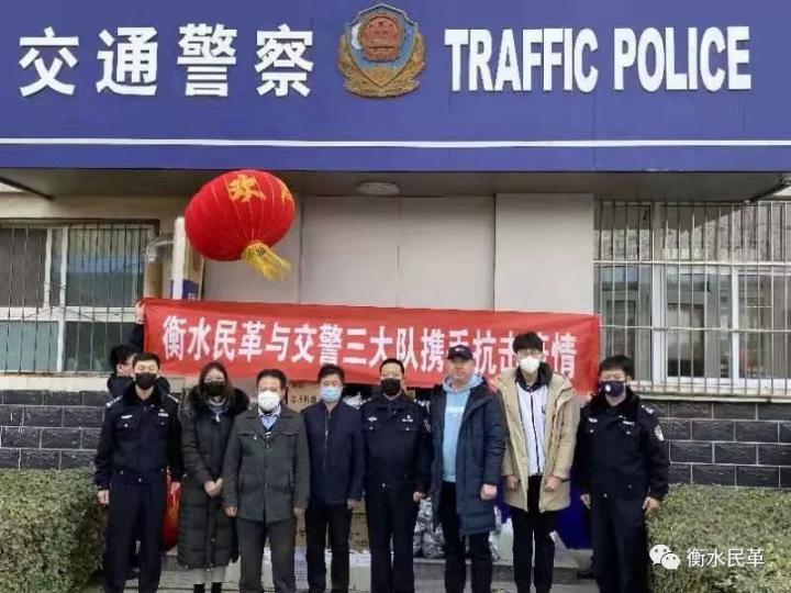 十一、民革衡水市委会第一时间向全市民革党员发出了《在新型冠状病毒肺炎疫情防控战中全体致党员的一封信》。衡水民革党员积极响应,在落实好各项防控措施的同时,在一天时间内自发捐款1.7万余元,并多方筹措购买到了84消毒液、中药、胶皮手套、消毒湿巾、杀菌洗衣液等紧缺防护物品。2月1日,由民革衡水市委驻会副主委李群保带队,分别将防护用品捐赠给工作在抗击疫情一线的桃城区社区工作者和衡水交警三大队民警,并代表衡水所有民革党员向他们致以崇高敬意。