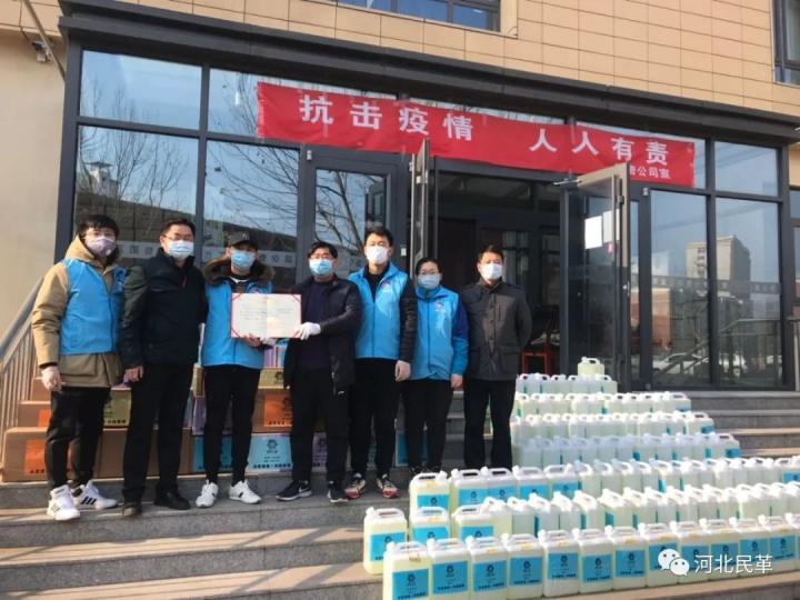 秦皇岛市山海关支部党员、秦皇岛新特科技有限公司总经理高彦,以企业名义向卢龙县红十字会捐款5万元,助力当地的疫情防控工作。民革党员纪红带领集团员工分别向秦皇岛市临港物流园区、秦皇岛市公安局交警支队、海港区北环路街道办事处送去价值28288元的84消毒液,通过市红十字会捐款20000元。民革秦皇岛市直二支部党员杨波以个人名义向海港区西港路街道办事处捐赠价值两万元的防护物资。民革燕山大学支部党员、秦皇岛金诺乐器有限公司经理唐敬波,以公司名义通过市红十字会捐款1000元向市残疾人联合会捐赠200公斤消毒液和10箱矿泉水,价值1900元,帮助残障群体防控疫情。