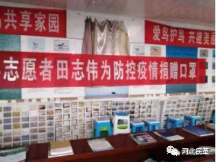 唐山民革联系人田志伟通过民革唐山市委会捐赠给华北理工大学附属医院4000只口罩,防护服40套;向17家曾支持野生动物保护工作的药店捐赠3600个口罩。截至目前,他共向社会捐赠医用口罩16500个,防护服80套。