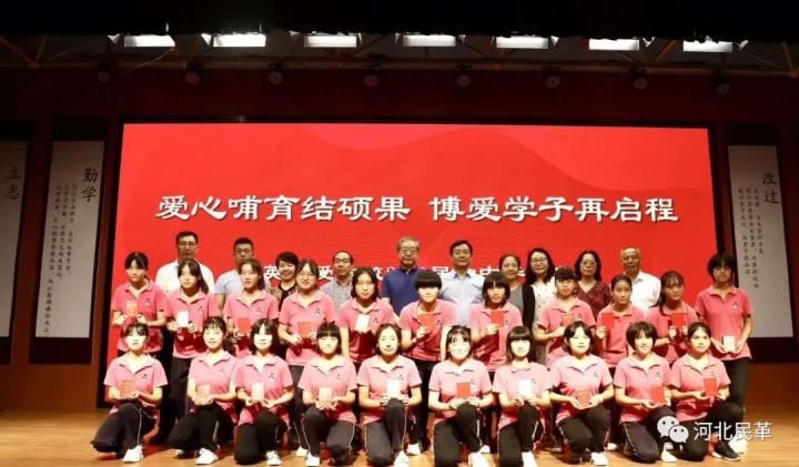 典礼进行到重要环节,卢晓光代表民革河北省委会,向圆满完成学业的21名毕业生表示热烈的祝贺,并向辛勤工作在教育一线的各位老师,表示衷心的感谢!