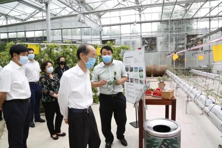 7月13日,民革中央主席万鄂湘率民革中央调研组,就“精品与智慧农业”课题在京开展调研。图为调研组一行考察“梦想家园”试验基地。