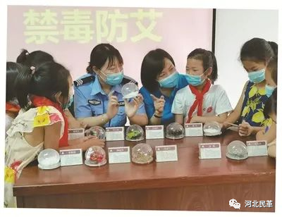 民革邯山二支部党员曹胜男(右三)等人参加禁毒防艾进社区宣传活动。