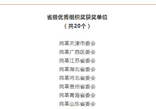 为隆重庆祝中国共产党成立100周年,引导广大民革党员继承发扬多党合作和民革优良传统,2021年,民革中央在全党开展了“百年中国梦,风雨同舟情”——民革中央庆祝中国共产党成立100周年网络知识竞赛。民革河北省委会高度重视,积极发动各市委会,号召广大党员积极参与,全省共有2400多名党员参与网络知识竞赛,形成了以赛促学的良好氛围。近日,民革中央对各省级组织、市级组织的组织参与情况进行评分和排名,民革河北省委会荣获省级优秀组织奖,民革唐山市委会荣获市级优秀组织奖。