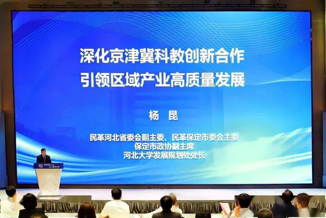 民革河北省委副主委、民革保定市委主委、保定市政协副主席、河北大学发展规划处处长杨昆做了《深化京津冀科教创新合作 引领区域产业高质量发展》的演讲。
