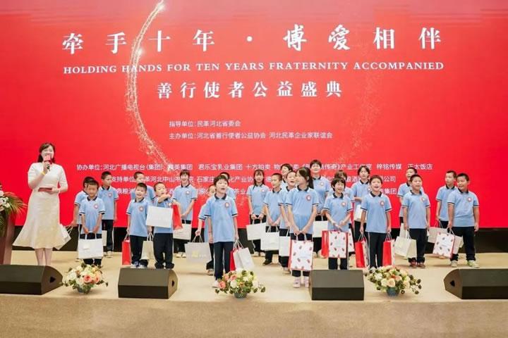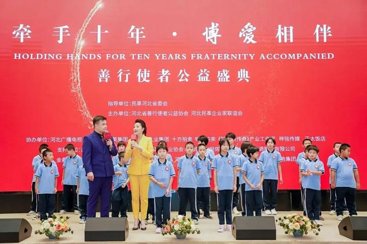 活动现场,河北省政协副主席、民革河北省委会主委何秉群,中共河北省委统战部副部长柴建民,河北民革企业家联谊会会长、精英集团董事长兼总裁翟志海以及河北省善行使者公益协会有关领导分别为“优秀公益团队”“公益榜样”“十年相伴,善行有我”“鲜花送雷锋”等荣誉获得者颁奖。石家庄市少年儿童保护教育中心儿童们现场表演了《亲爱的小孩》《听我说谢谢你》等集体歌舞节目,向大家展示了身沐幸福、充满希望的生动形象。河北广播电视台主持人任滟俐、张驰、王欢主持本次公益盛典活动。
