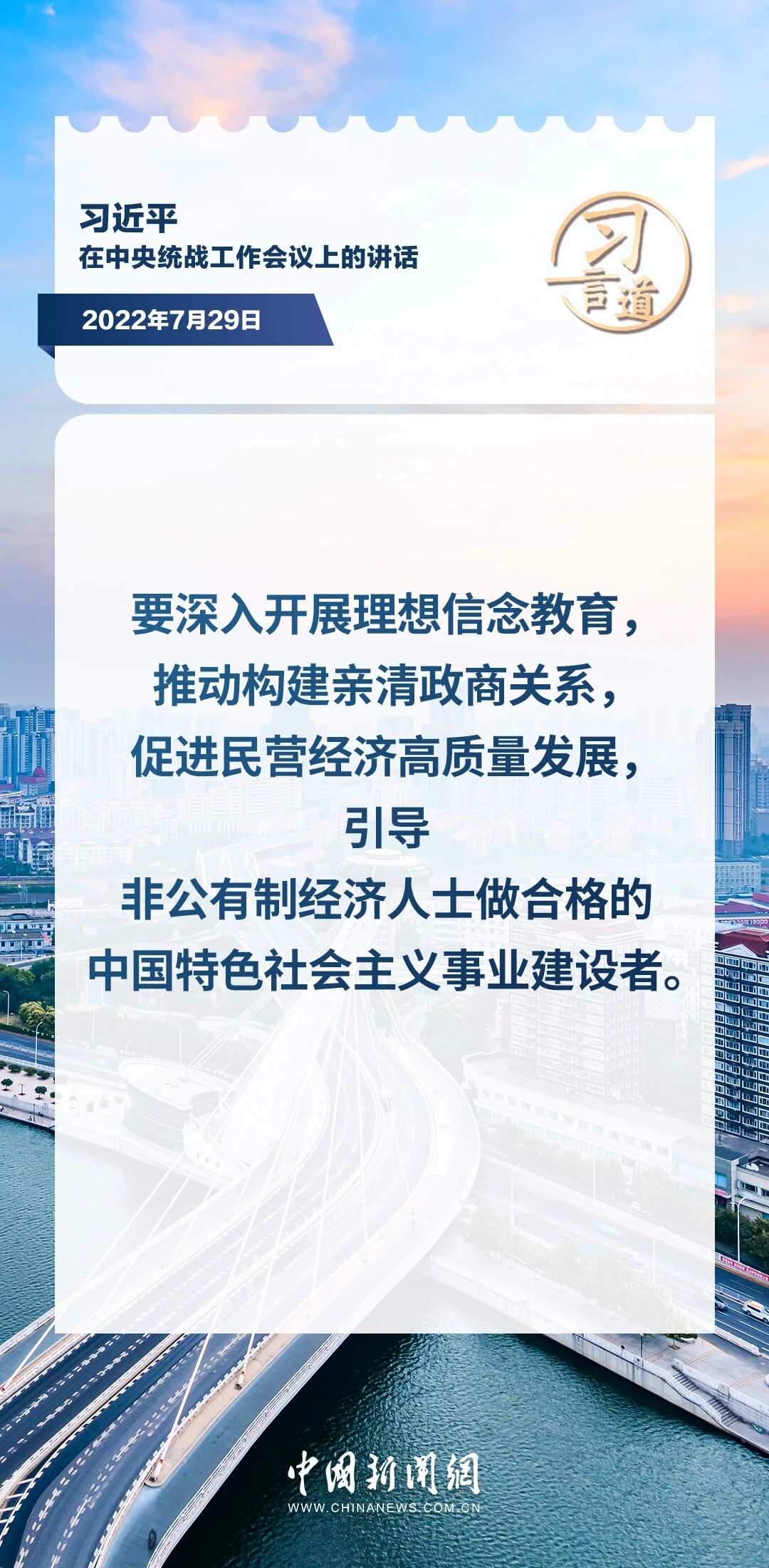民营经济是社会主义市场经济的重要组成部分,是推进中国式现代化的生力军,是高质量发展的重要基础。习近平总书记高度重视统一战线工作,强调必须促进非公有制经济健康发展和非公有制经济人士健康成长。