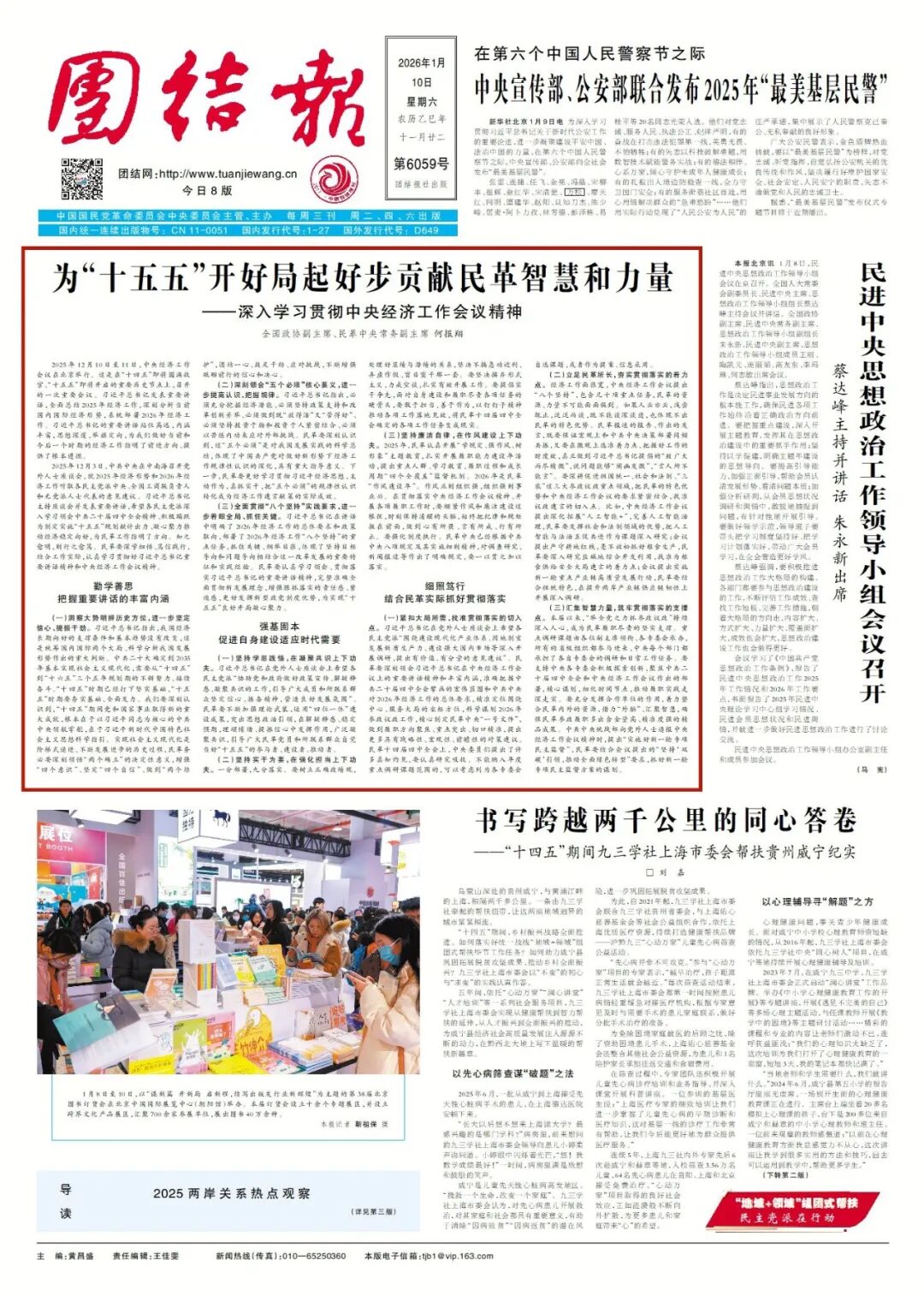 (三)坚持廉洁自律,在作风建设上下功夫。2025年,民革认真开展“学规定、强作风、树形象”主题教育,扎实开展履职能力建设年活动,提出重点人群、学习教育、履职过程和成长周期“四个全覆盖”监督机制。2026年是民革“作风建设年”。作风正则组织强,组织强则事业兴。在贯彻落实中央经济工作会议精神、开展各项履职工作时,要绷紧作风和廉洁建设这根弦,时刻保持清醒的头脑,始终把纪律和规矩挺在前面,做到心有所畏、言有所戒、行有所止。要强化制度执行。民革中央已经根据中共中央八项规定及其实施细则精神,对调查研究、新闻报道等作出了明确规定,要一以贯之加以落实。